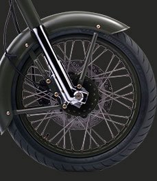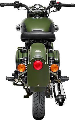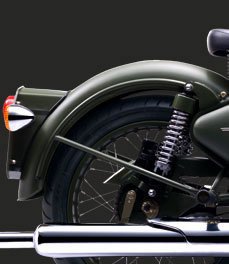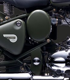 Battle GreenThe Classic Battle Green comes to you with a paint scheme reminiscent of the War era, a time when Royal Enfield motorcycles proved their capabilitities and battle worthiness by impeccable service to soldiers. Donning a younger look with styling cues one would expect only from a genuine Royal Enfield: single cylinder air-cooled pushrod engine, 1950s style nacelle and toolboxes, traditional paint scheme and buffed engine components, this motorcycle is all set to bring you the pleasures of modern motorcycling while reflecting the aura of classic eternal styling.