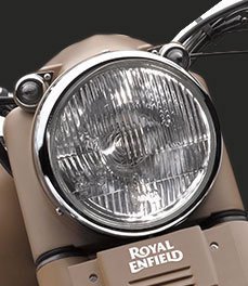The Classic Desert Storm comes to you with a “sand” paint scheme reminiscent of the war era, a time when Royal Enfield motorcycles proved their capabilities and battle worthiness by impeccable service to soldiers in harsh conditions of the desert. Donning a younger look with styling cues one would expect only from a genuine Royal Enfield: single cylinder air-cooled pushrod engine, 1950s style nacelle and toolboxes, traditional paint scheme and buffed engine components, this motorcycle is all set to bring you the pleasures of modern motorcycling while reflecting the aura of eternal classic styling.